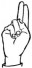 На ћирилици написано МОМИРА ПЕТРОВ састоји се из 12 слова [?]. Исписано ћириличном једноручном азбуком за глувонеме: