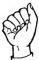 На ћирилици написано МОМИРА ПЕТРОВ састоји се из 12 слова [?]. Исписано ћириличном једноручном азбуком за глувонеме: